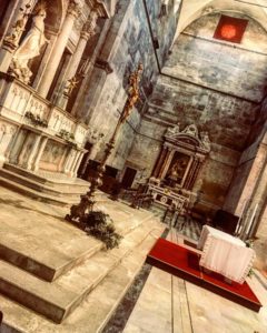 Non può quindi essere un orario esatto! Se avete dieci minuti di tempo e se la trovate aperta, entrate nella chiesa di Santa Maria Forisportam ed andate verso l’altare fermandovi immediatamente prima degli scalini.